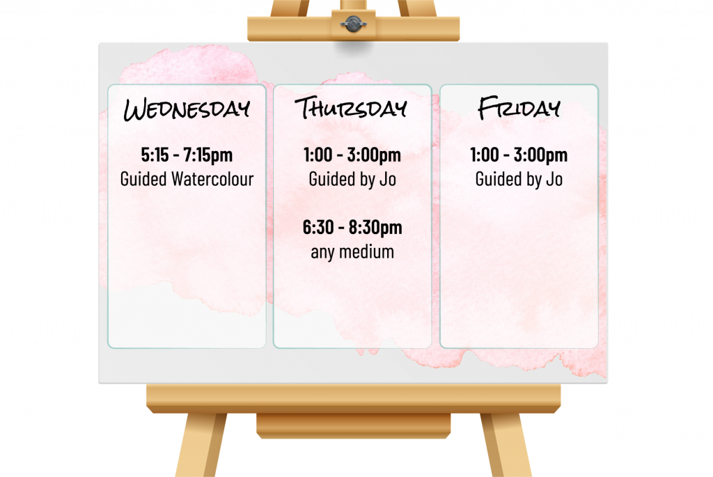 Small groups of 6-10, very relaxed and informal with like-minded people. Blocks of 5 weeks with a structure or do your own thing with some encouragement from those around as well as guidance from Jo.