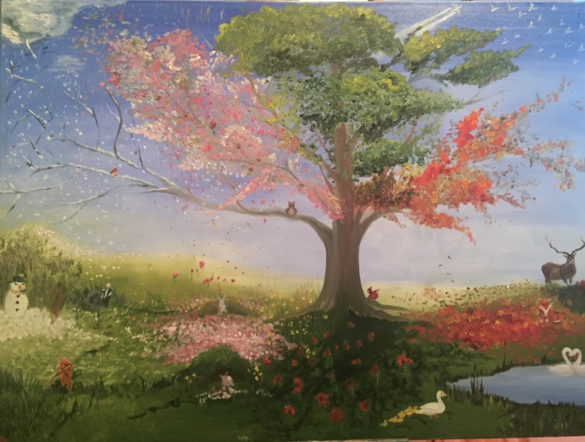 To date, there are discussions about our physical health and mental health and slowly we are realising that our spiritual health is just as important – our individuality and connection with all that surrounds. Our emotional realm can be seen as the present, our thinking realm can be seen as our past ie why am I feeling this way – when have I felt this way before, our will can be viewed as our future so how we bring our will in and respond rather than react can help shape our future. We can have a logical story and go round in circles, but my experience is that art revealed to me things my psyche had protected me from till I was strong enough to deal with it.